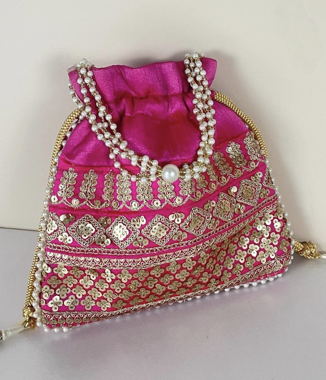 Designer Pearl Potli Bag-Rani Pink colour